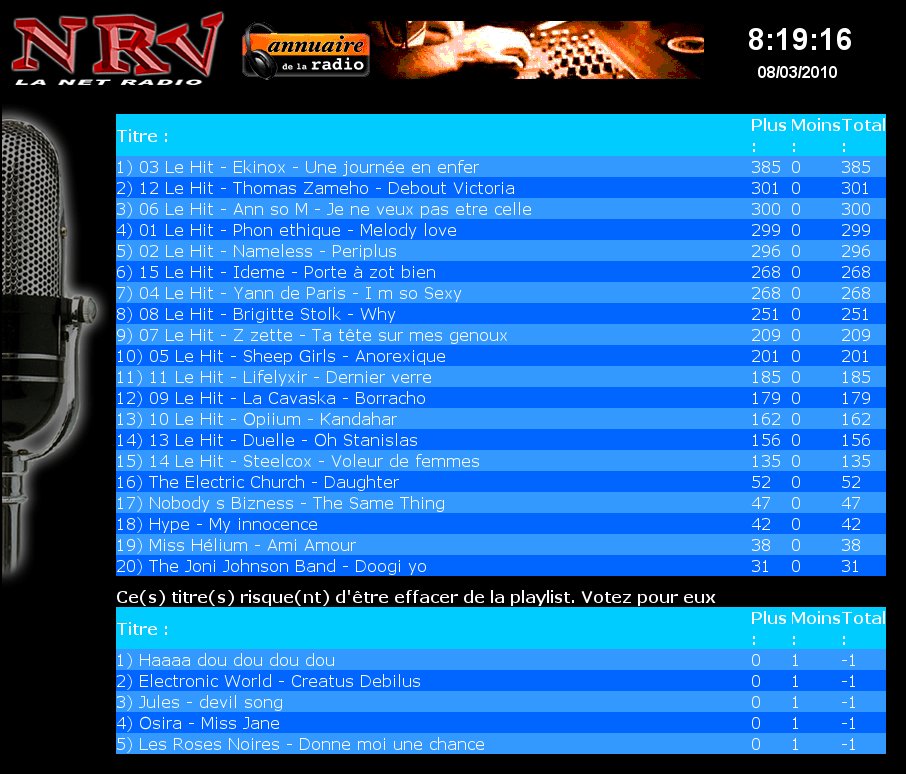 Mars 2010 Debout victoria deuxieme au Hit-radio NRV