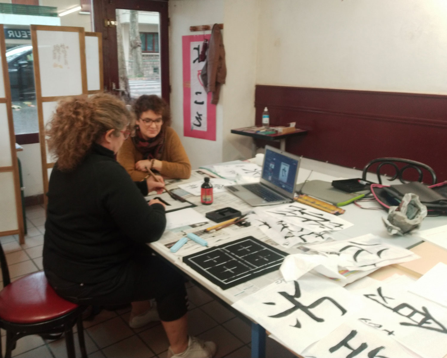 Je propose de vous initier au shûji en traçant des caractères japonais des différents systèmes d’écriture, les kana et les kanji. L’atelier dure environ deux heures. Le matériel est fourni.