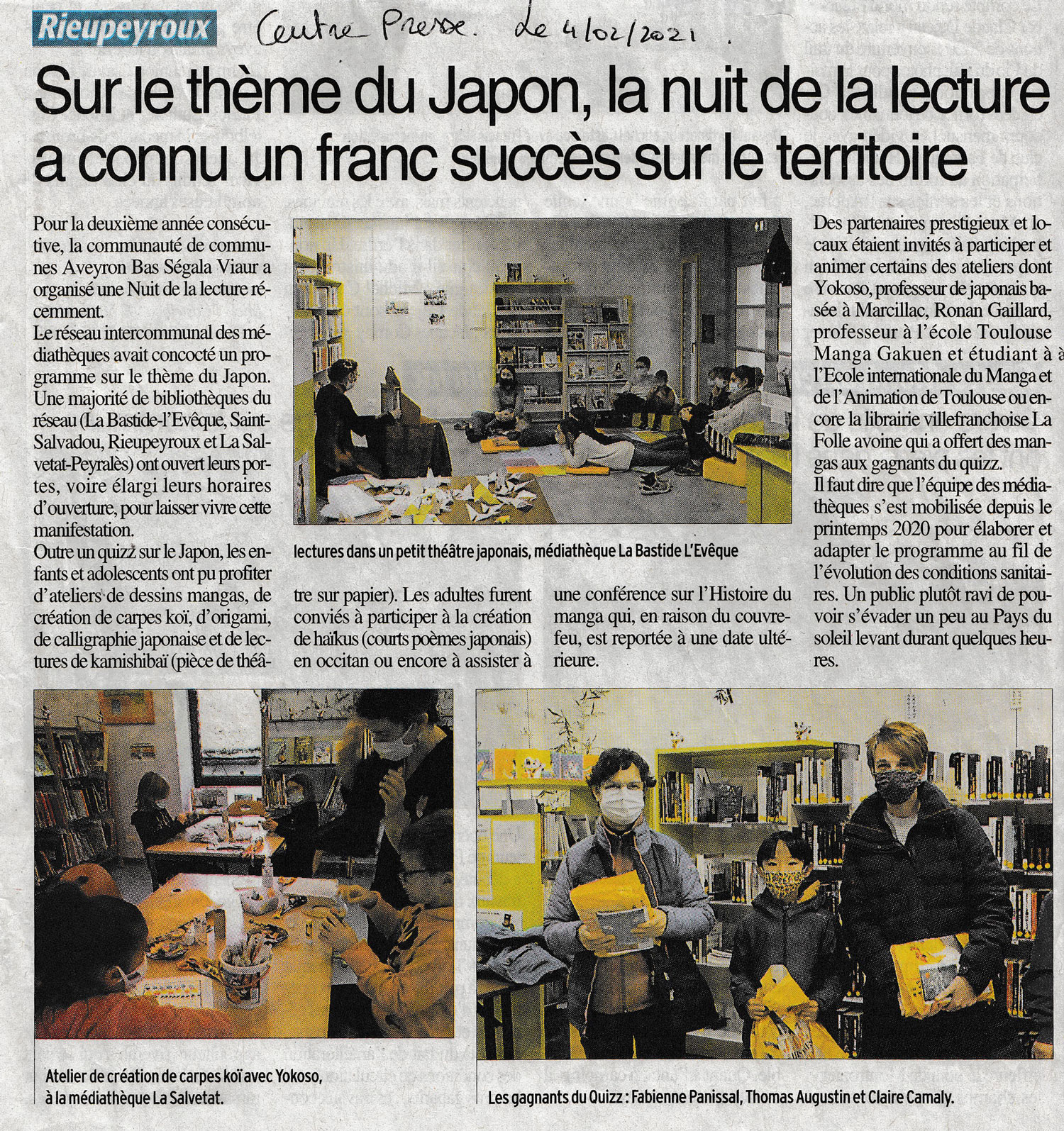 De 2017 , animation mensuelle du club « culture japonaise » de la MJC. Initiation à la langue, ateliers et présentations.